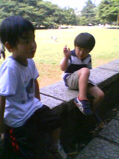 ん?とそちらを向くと 「ワアーーー!!」蜘蛛の子散らして去っていく。笑