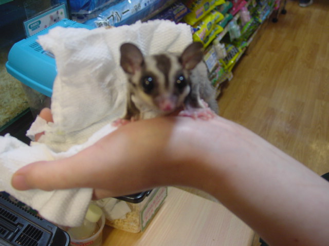 モモンガの赤ちゃんに店員さんがミルクをあげるところに遭遇