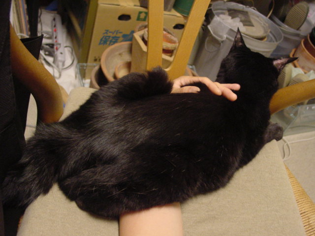 最近、お腹を撫でている態勢のまま私の腕の上にどでーんと