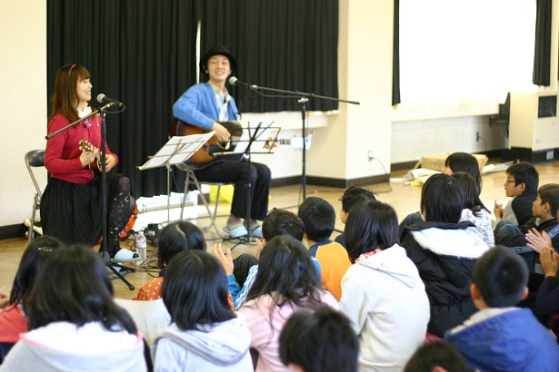 5時間目に123年生たちへ、6時間目に456年生たちへ向けて演奏しました。